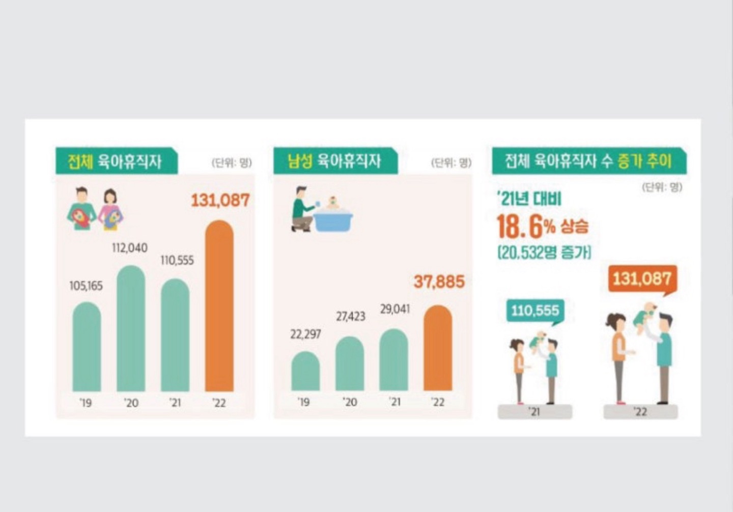 그러나 최근 남편의 유아 휴직이 많이 증가했으며, 인식의 전환도 많이 진행되고 있다.